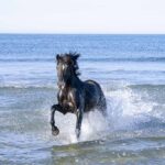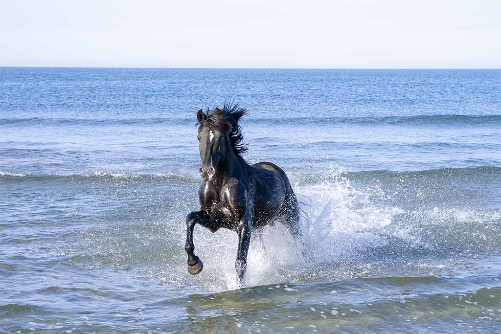 In the morning, we photograph a beautiful black trained Andalusian stallion who loves the beach! We capture him running along the beach and frolicking in and out of the sea and surf providing a wide range of dramatic images.
