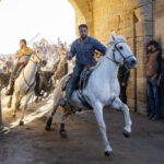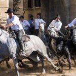 Early afternoon capture festival life in and around the beautiful town of Aigues-Mortes, including bull racing; pop up theatre animation; abundant food and wine! At midday and in the evening, there is a party atmosphere with a ball and concert on the main square.