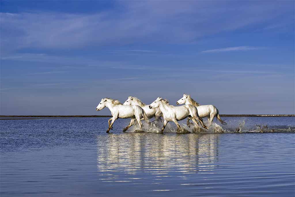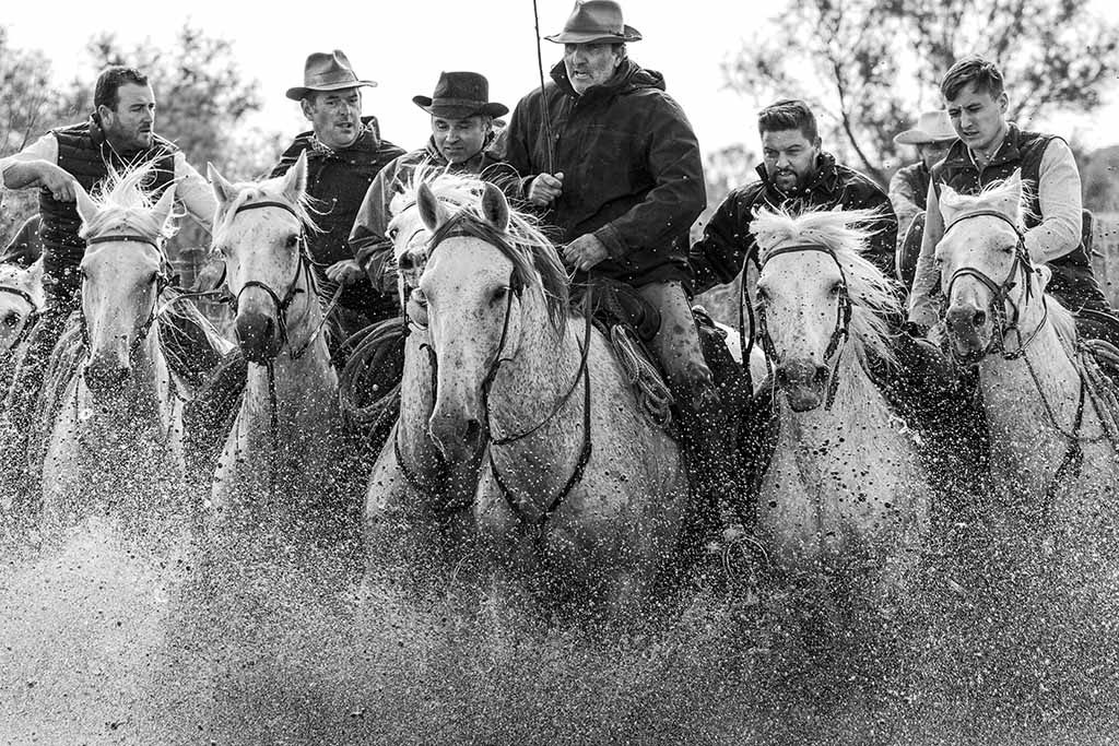 Photographing the Wild White Horses is a dream come true for most people. It’s an exceptional experience to see this world-renowned and noble breed splashing through the shallow waters of the marshland with the Gardians (Camargue Cowboys) on horseback.