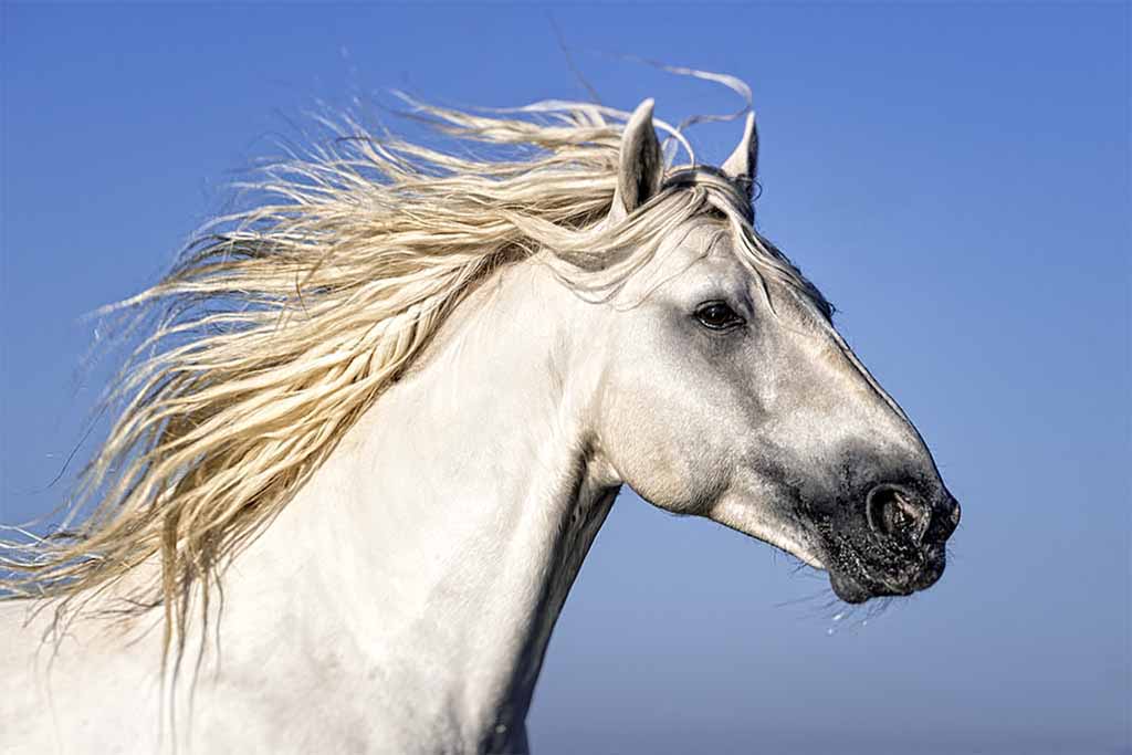 In the morning, we head to the beach for a shoot with a beautiful trained white Camargue stallion. We photograph him rearing on the top of the sand dunes and running along the golden sand of the beach, and in and out of the sea, making for striking action shots and beautiful portraits.