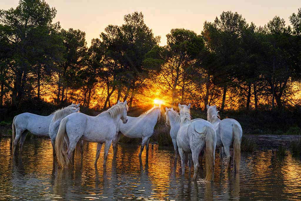 Before sunrise, we head for the Parc Ornithologique, which is a natural Camargue wetlands park of great importance. Led by our bird specialist, who has access before it opens to the public, you will be taken to the ideal spots to get the birds at their very best, as they fly over at sunrise. He knows the best hide-outs at the right time of the day to capture single birds perched on a tree or when to enjoy the vast lakes for flocks of pink Flamingos and the largest array of birdlife in Europe.