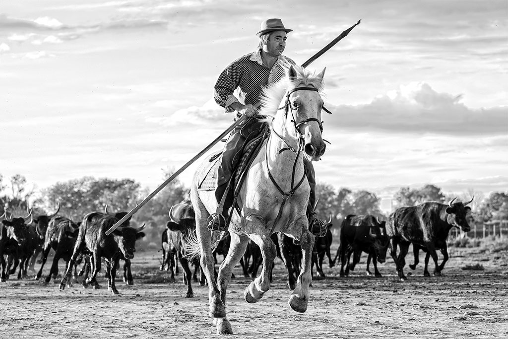 We spend the morning shooting portraits of the Gardians (Camargue Cowboys) with their ‘weathered’ faces – they are perfect subjects for stunning black and white portraits. Serge demonstrates how to obtain a classic portrait, along with helpful tips when working with subjects who may not be comfortable in front of the lens. You will learn about composition, lighting techniques, using daylight and portable flash, lens choice and how to deal with the elements around you.