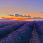 In the afternoon we have our last shoot of the lavender fields, and we end the day when the sun sets over the horizon.