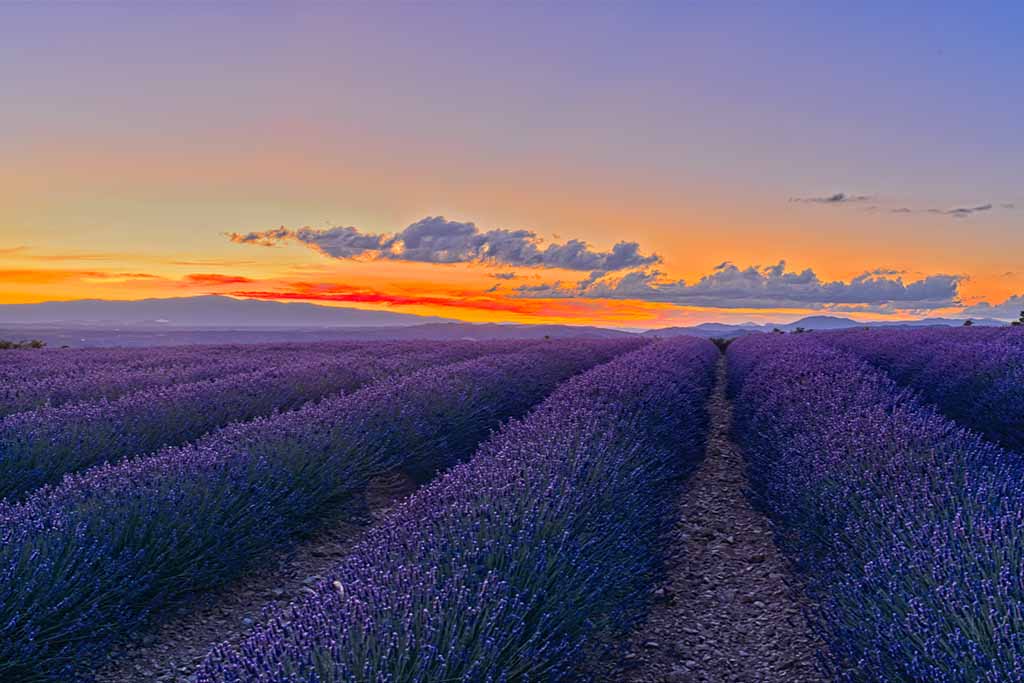 Before sunrise, we head for the Lavender fields in the pale morning light. We will capture different views of the lavender, dotted with small stone shepherd’s huts (Mazet) with the Provence Alpes as a backdrop.