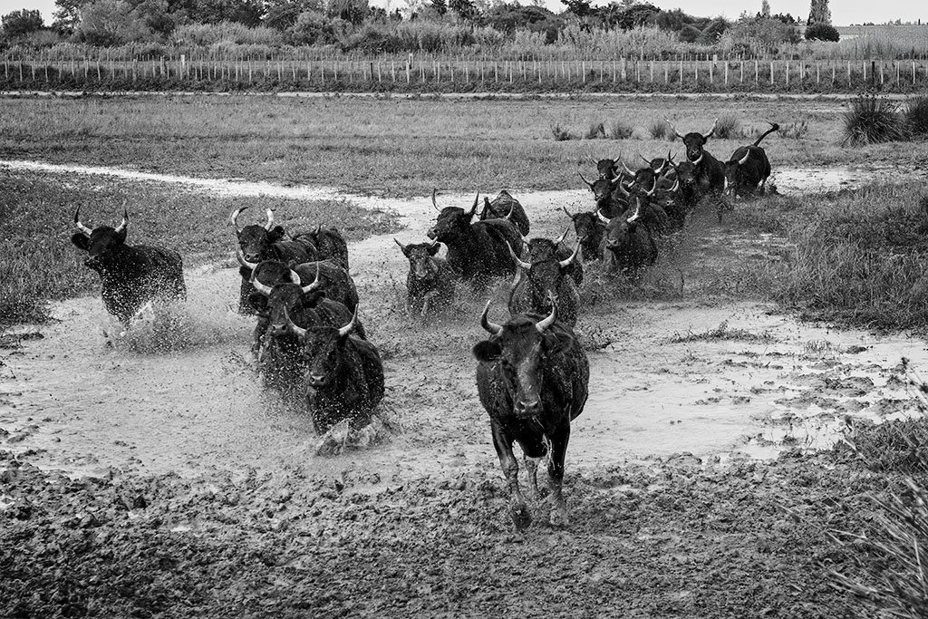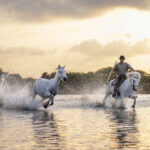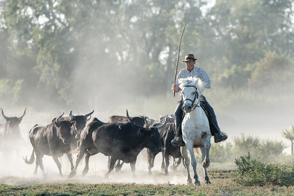 In the afternoon, we will capture the Black Camargue bulls, thundering through the shallow waters of marshland, with their horns held high, as they are herded by the Gardians on horseback – a unique and thrilling photographic experience.