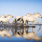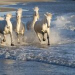 In the afternoon, we head to the beach for the ultimate spectacle of the wild white horses running along the golden sand and through the surf, with sea spray flying. We shoot several drives in different directions, so you can capture an assortment of action pictures, with a variety of lighting conditions. We will also photograph the horses at a peaceful shallow lagoon and frolicking in the sand on the beach.