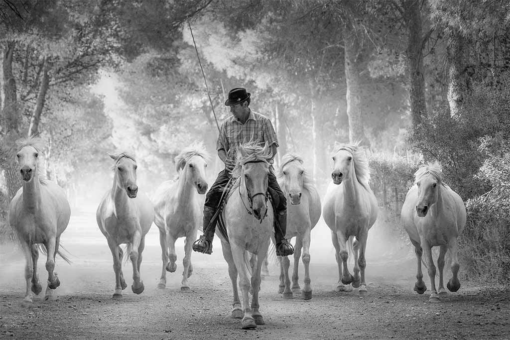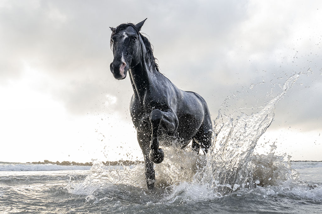 The second half of the tour is in the Camargue where we will photograph the famous Wild White Horses, a bucket-list dream for photographers from around the Globe. We will capture the white horses in various locations with different compositions in the marsh and on the beach. You can’t beat the adrenalin rush of this noble breed splashing through the shallow waters of the marsh and beach and heading straight towards your camera! This equine dream also includes a shoot with a beautiful black stallion on the beach and an indoor portraits shoot of several different horses with lighting, against a moody backdrop.