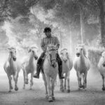 For the final Camargue shoot, we photograph the Camargue white horses running through a big lake.  The location is ideal to capture minimalist images in colour or black & white.